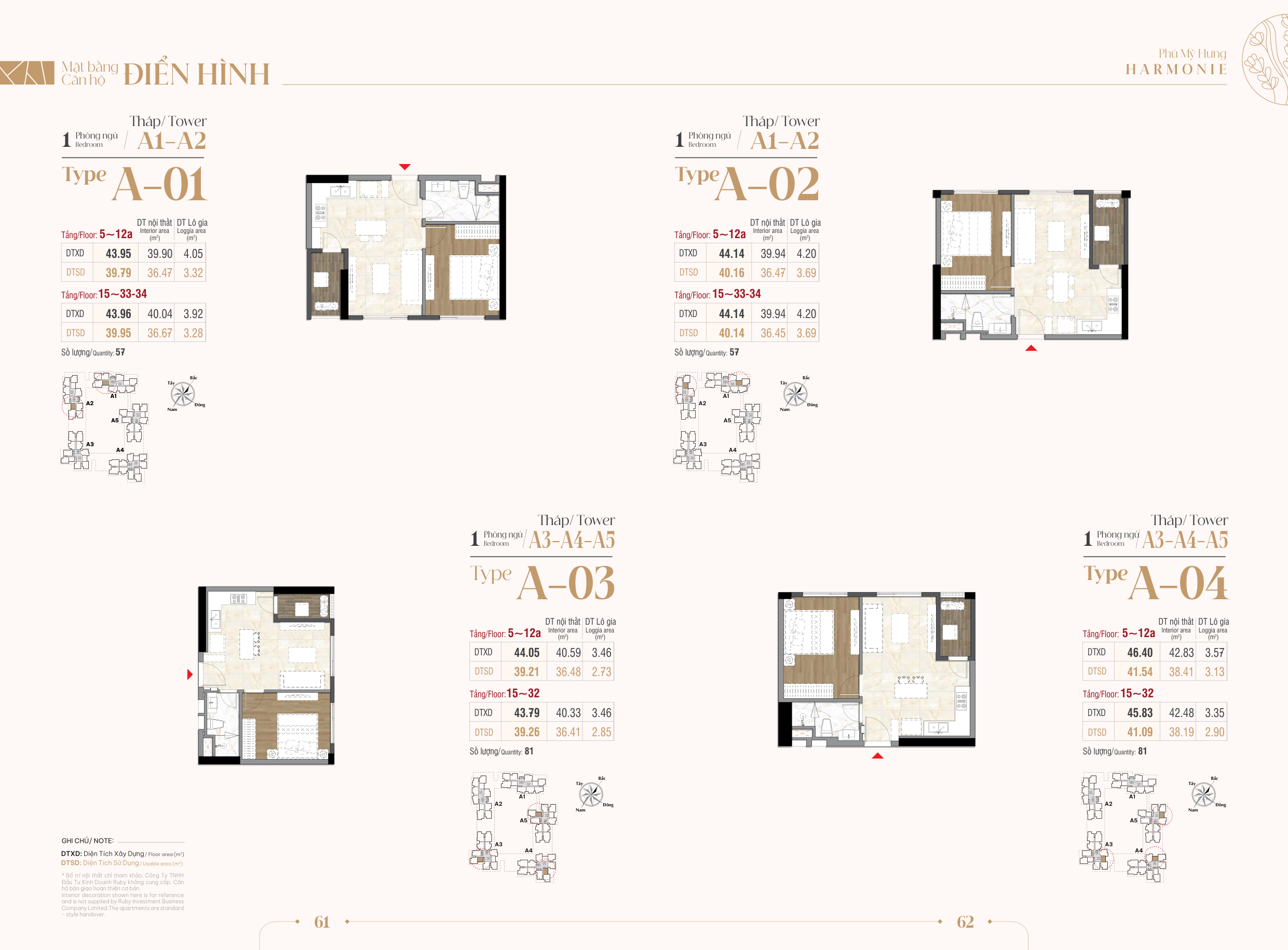 – Penthouse & Duplex tại dự ánThe Harmonie: Dòng sản phẩm hạng sang với diện tích trên 150 m², thiết kế thông tầng hoặc trên tầng cao, tầm nhìn rộng mở hướng sông và toàn cảnh thành phố, mang đến không gian sống riêng tư, đẳng cấp dành cho chủ nhân tinh hoa.