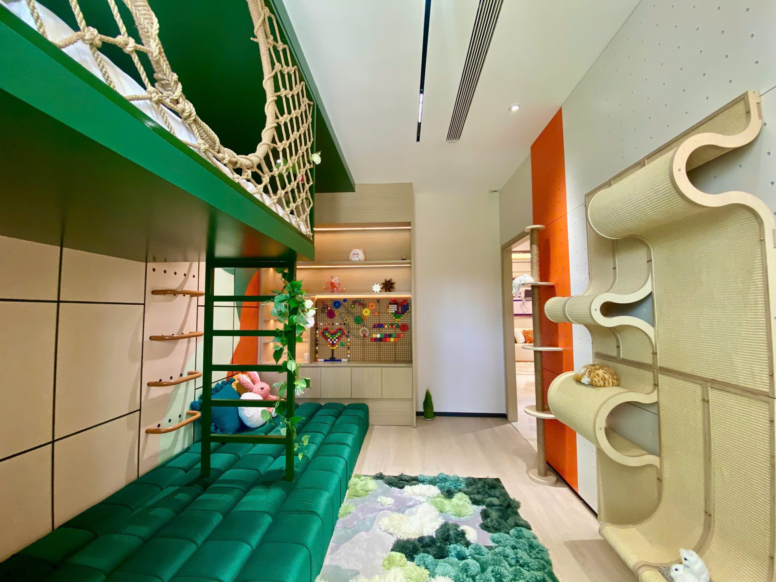 Các không gian mở bên trong được sắp xếp hài hòa giữa các phân khu, tạo nên sự chuyển tiếp nhẹ nhàng giữa không gian riêng tư và khu sinh hoạt chung, đảm bảo sự yên tĩnh cần thiết nhưng vẫn giữ được tính kết nối cộng đồng.